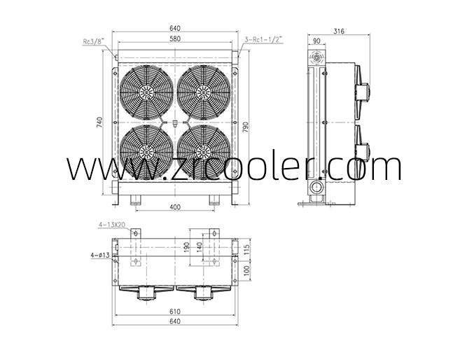 This series of products are made of aluminum alloy materials with light weight, high seismic strength and high heat exchange efficiency. In the structure, there are fins in the tabulators, this can maximize the radiation area, accelerate heat transmission. Under the work of the fan and the cooling source of air, the heat is taken away. So it is the best cooling choice of the low cost and high efficiency.